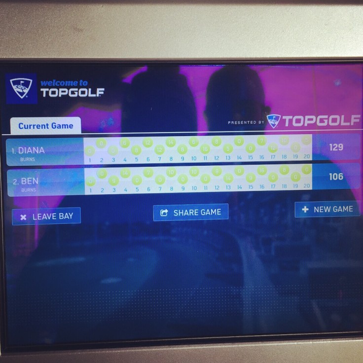 So for starters, you have to buy a $5 membership card that’s good for life, but don’t lose it! The facility is large with a bar/restaurant and a rooftop lounge plus three floors of golf bays. We were on the bottom floor. Since Ben is a lefty, he had to request a set of clubs which they have stored in the back. They run you through a quick lesson at your bay and you’re off to playing!