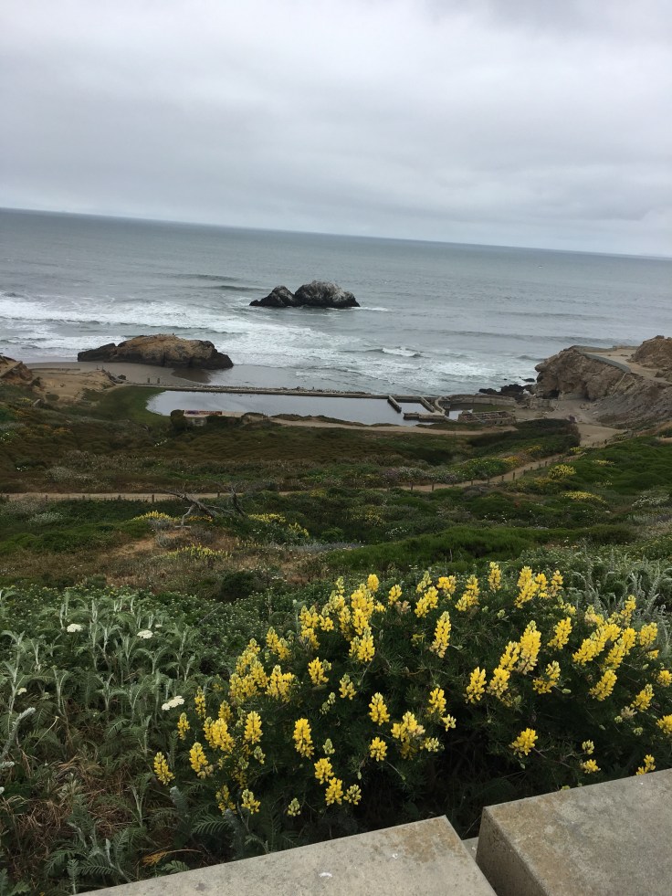 We hiked a good hour and a half to two hours. I can’t really say where we started or how far we got as I believe this is a five mile hiking trail in its entirety and we certainly didn’t go five miles! But we saw some amazing views, walked the labyrinth, wandered through the Sutra Baths, took pictures with the Golden Gate Bridge as our backdrop, and explored some small caves. It’s almost like I forgot we were in this huge city as it seems so remote while on the trail. A good thing to know is that you don’t have to wear special attire on the trail. It was a fairly easy hike in my sneakers, jeans, and sweater.