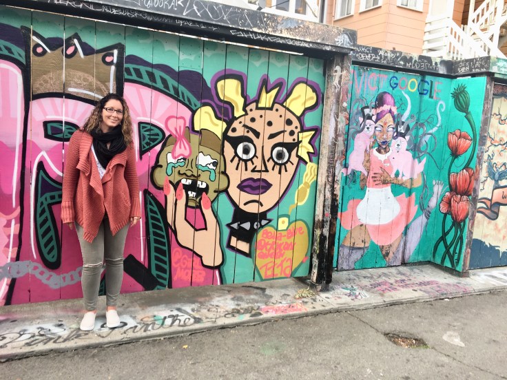I feel like this alley is a photographer’s dream. Or an artsy couple’s ideal locale for engagement photos. It was fun wandering down this street and seeing all the different murals on the wall. I mean, yes, some are a bit provocative, but that’s art! The Mission District as a whole is an artsy area with lots to do other than this alley. I wanted to check out the actual mission but we ran out of time and only just drove by for a quick look. I would love to spend an entire day in the Mission District solely and check out the rooftop bar, thrift stores, the park and much more.