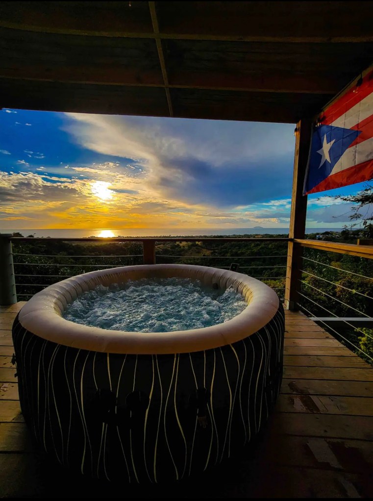 My husband and I stayed 4 nights at an Airbnb in Rincon. It was located up the mountain, only 8 minutes to town. The location provided beautiful mountain and sunset views from our balcony; and we even had a hot tub which made watching the sunset even better!